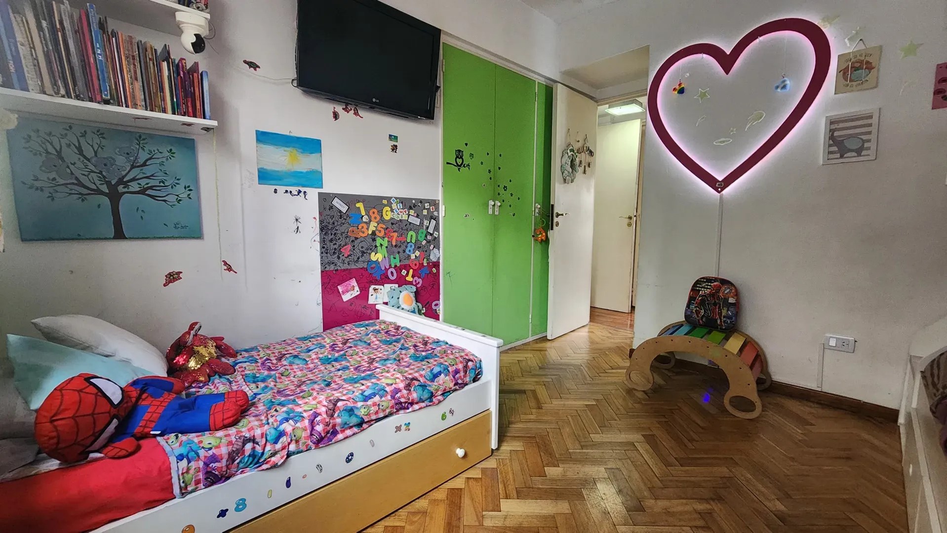 La habitación secundaria (3,10×3,10m) cuenta también con piso de parquet hidro laqueado, amplio placard empotrado, estufa Tiro Balanceado y Aire Acondicionado Frio/Calor. Cuenta con ventana hacia el pulmón del edificio, lo cual habilita la ventilación cruzada y le da gran luminosidad al ambiente.
