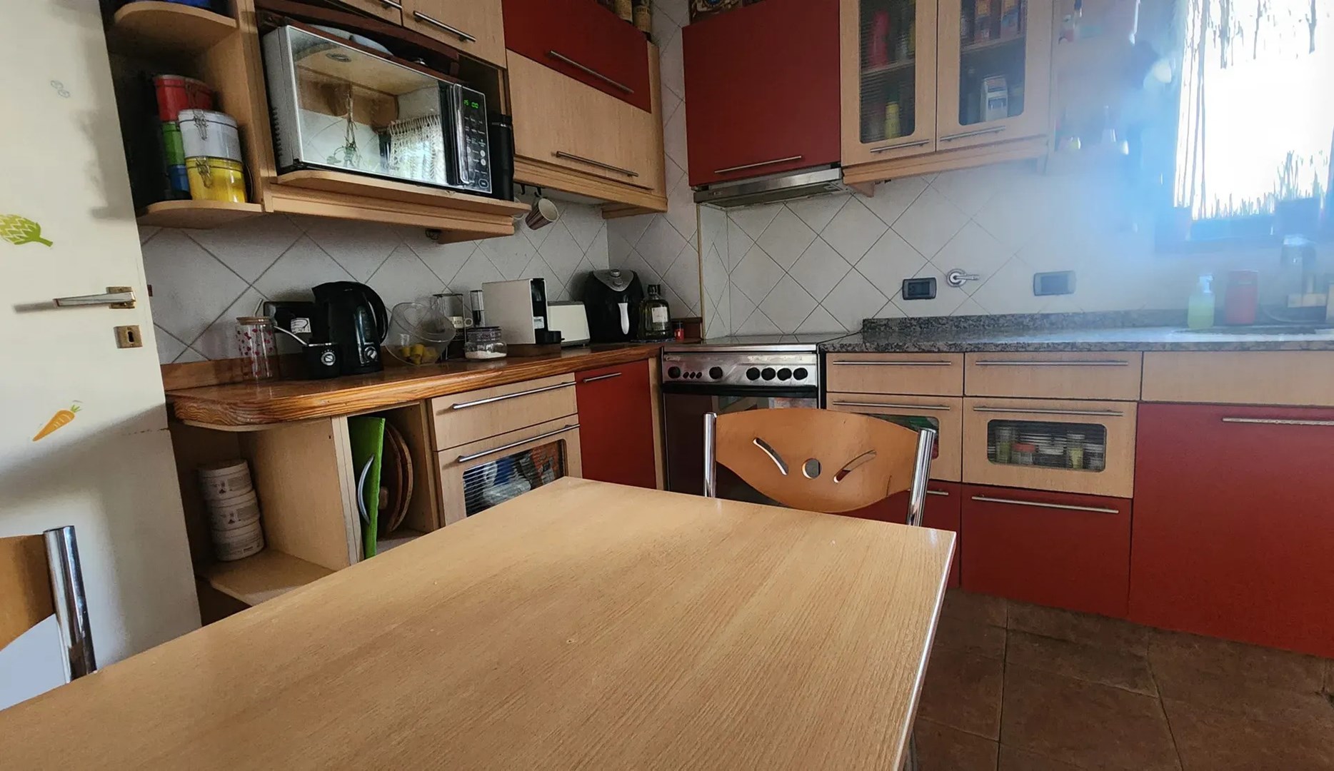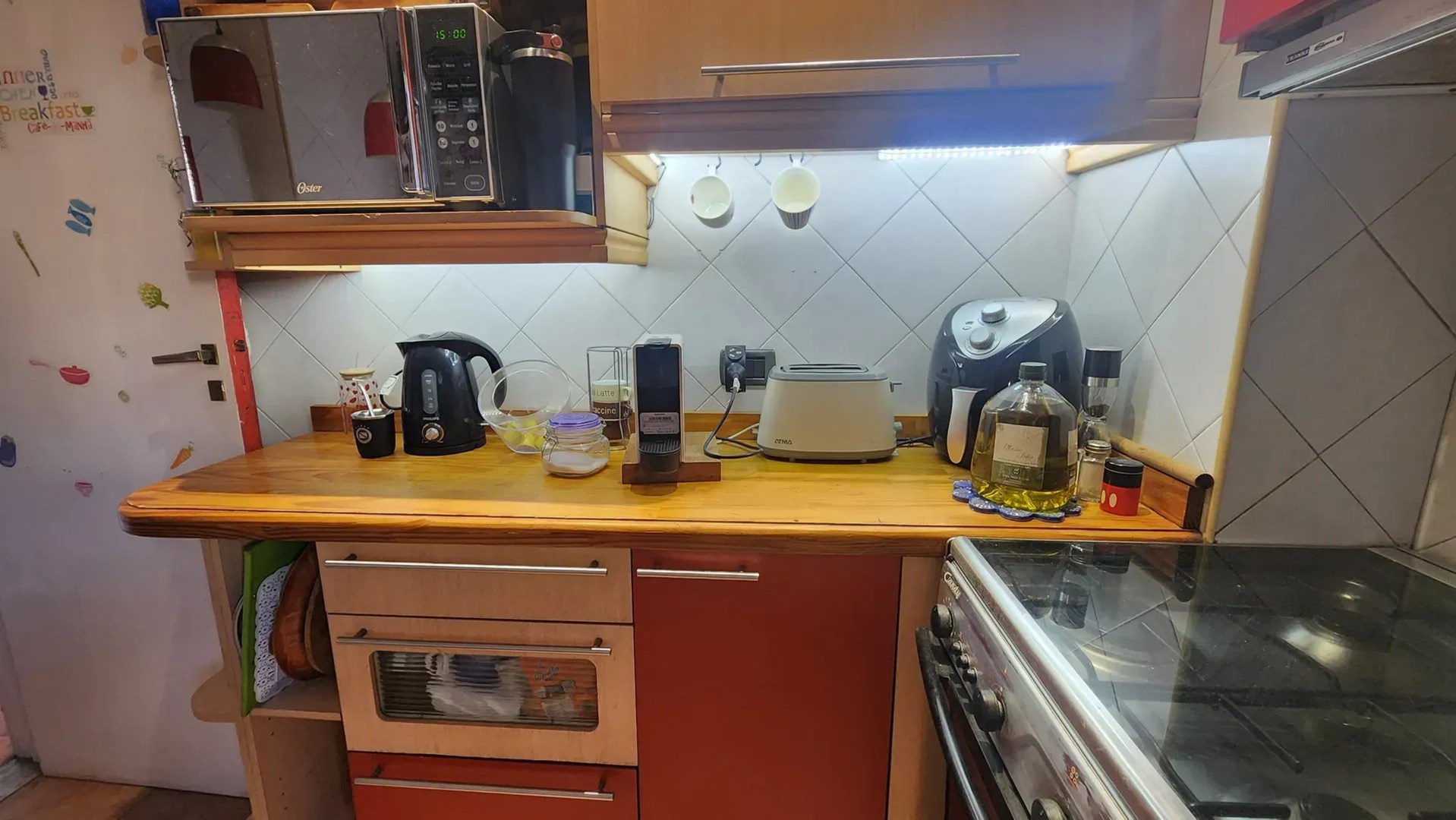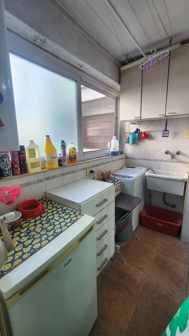 Continuando en línea recta al ingresar, se encuentra la Cocina (3,00×2,70m) completamente remodelada hace 12 años, con ventana al pulmón del edificio. Mesada de mármol, bacha doble y una mesada de madera lustrada. Alacenas, cajoneras y bajomesadas con mucho espacio de guardado. Mueble cristalero, a medida. Iluminación LED bajo las alacenas. Las generosas dimensiones del espacio permiten la instalación de un pequeño desayunador. Continuando hacia la derecha, el lavadero techado (2,30×1,50m) que fue cerrado con ventanales (espacio semicubierto por escritura) que también tiene amplio espacio para lavarropas, cajoneras e incluso algún electrodoméstico como un freezer adicional. Instalado en este ambiente hay un moderno Calefón sin piloto con tiraje al exterior, un comodísimo tender colgante y una alacena de guardado. Continuando se ingresa a la dependencia (2,50×2,30m), donde hoy funciona una pequeña oficina con su propio toilette (1,10×0,80m) y placa Ecosol. Este ambiente posee entrada independiente.