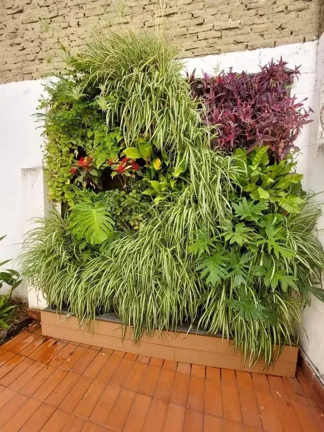 Jardín con parrilla.