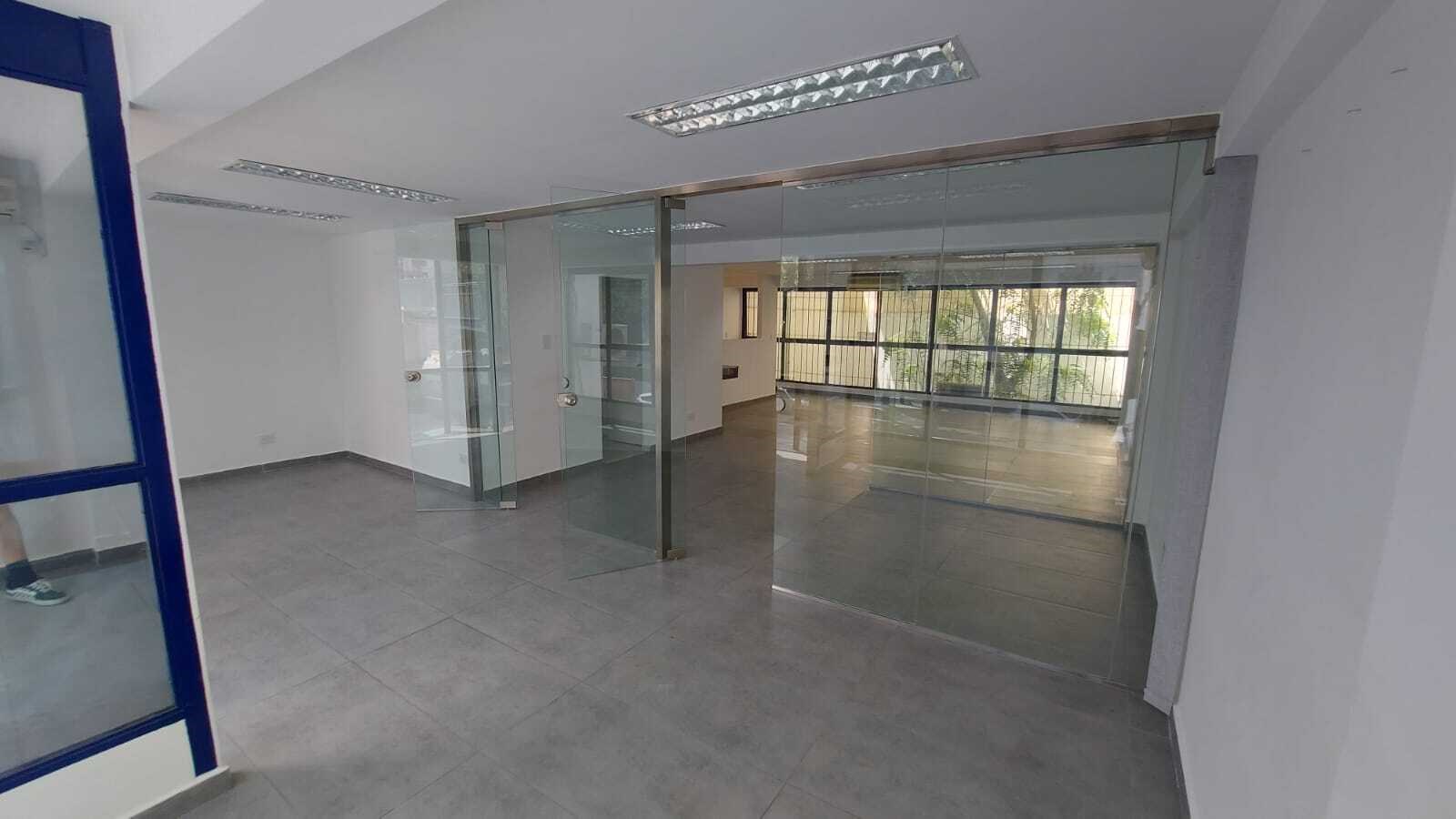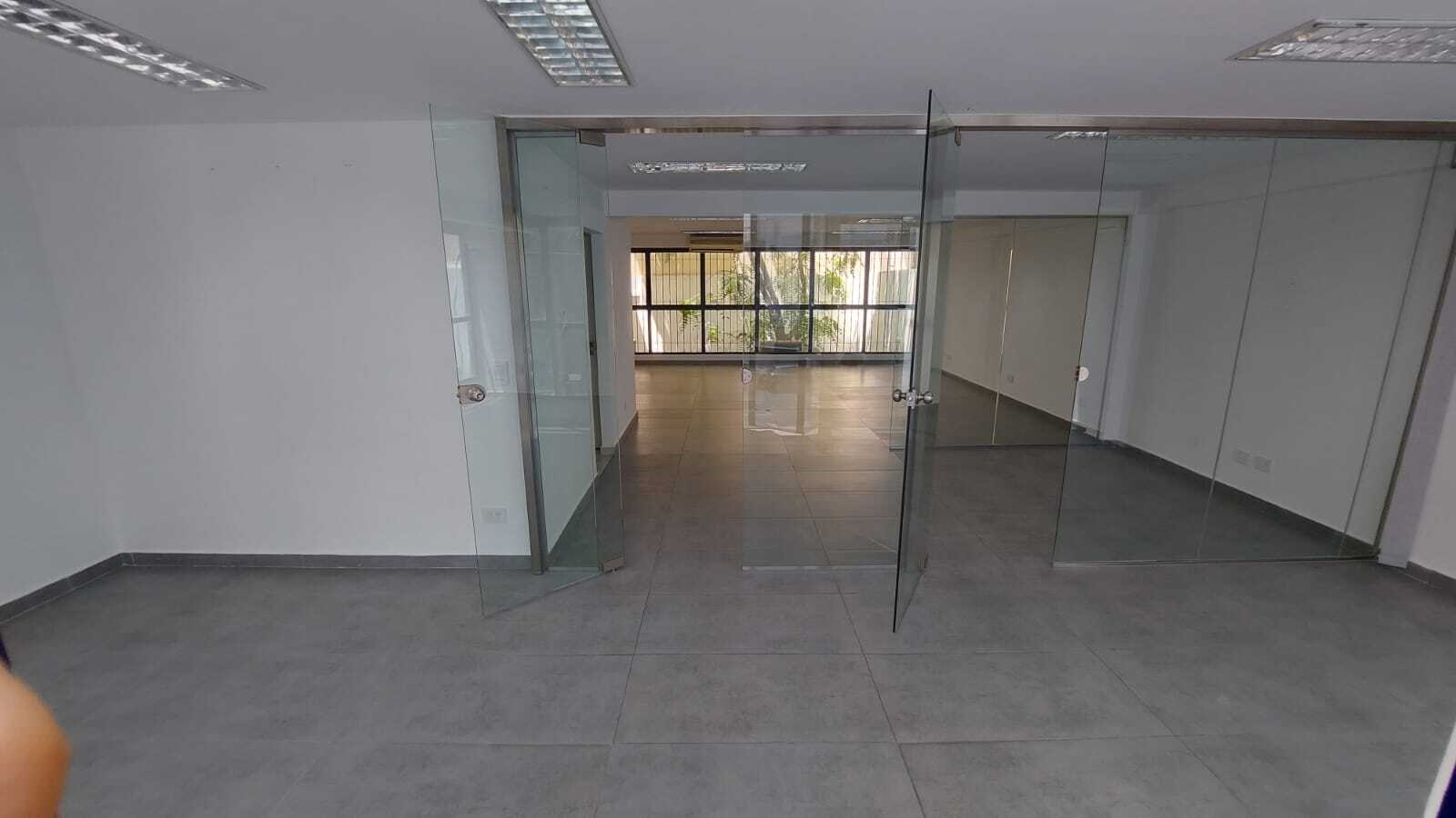 En Primer Piso con amplio espacio libre (sin columnas) con despachos sectorizados con vidrios Blindex. Baños de hombres y de mujeres con kitchenette. Pisos de porcelanato gris de placas grandes.