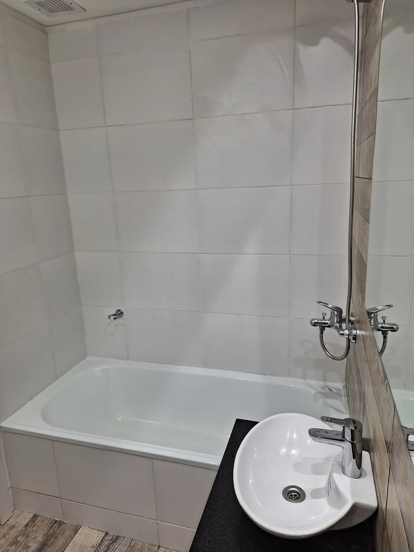 Departamento de dos ambientes en 8º piso, al contrafrente, muy amplio y luminoso (36 m²). Totalmente amoblado a estrenar, incluye utensilios de cocina. Capacidad para dos personas.