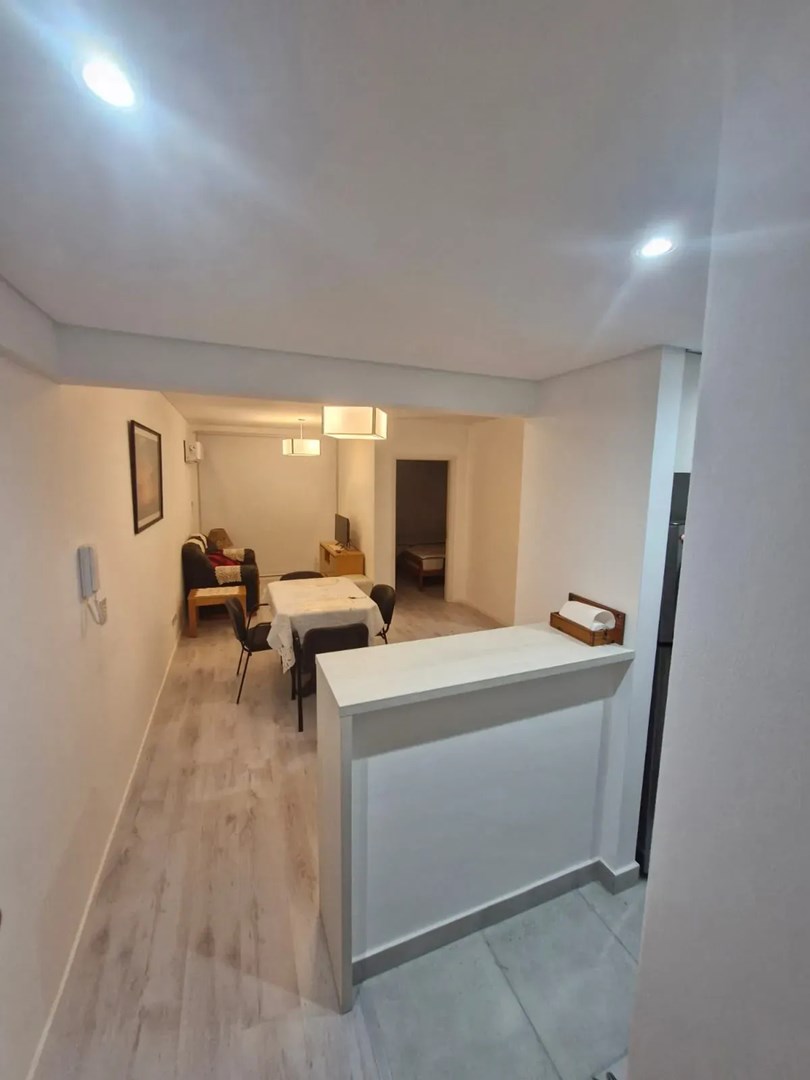 Departamento de dos ambientes en 8º piso, al contrafrente, muy amplio y luminoso (36 m²). Totalmente amoblado a estrenar, incluye utensilios de cocina. Capacidad para dos personas.