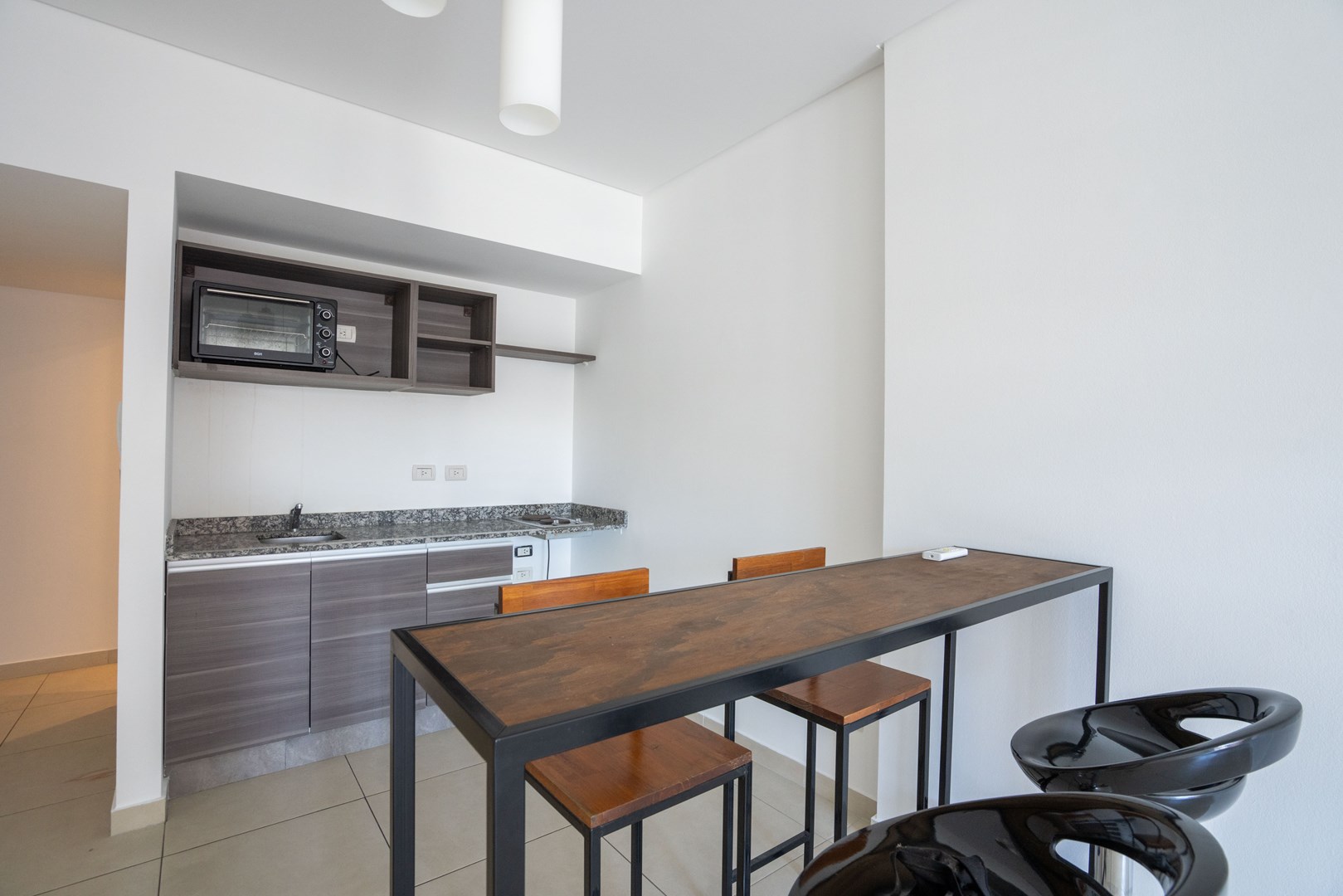 Se vende tal cual las fotos: con barra y 4 banquetas, mueble divisor, aire acondicionado frio/calor y placard.