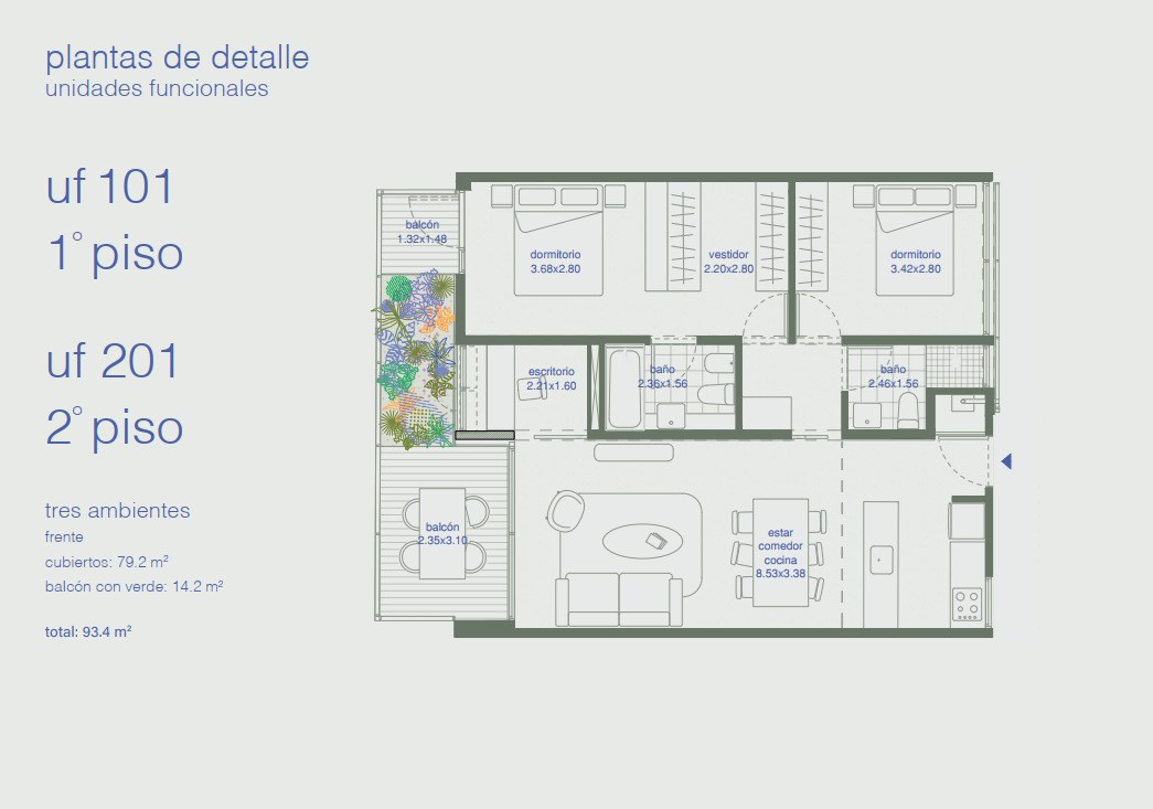 Superficie total 93.45 m2