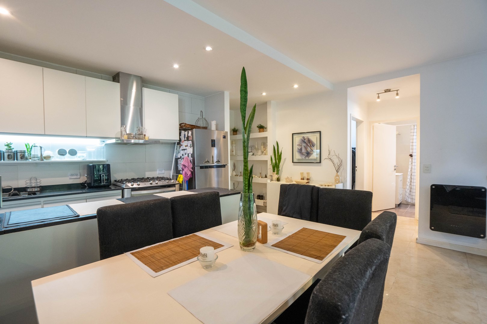 Cocina semi-integrada al living comedor súper amplio y cómodo.