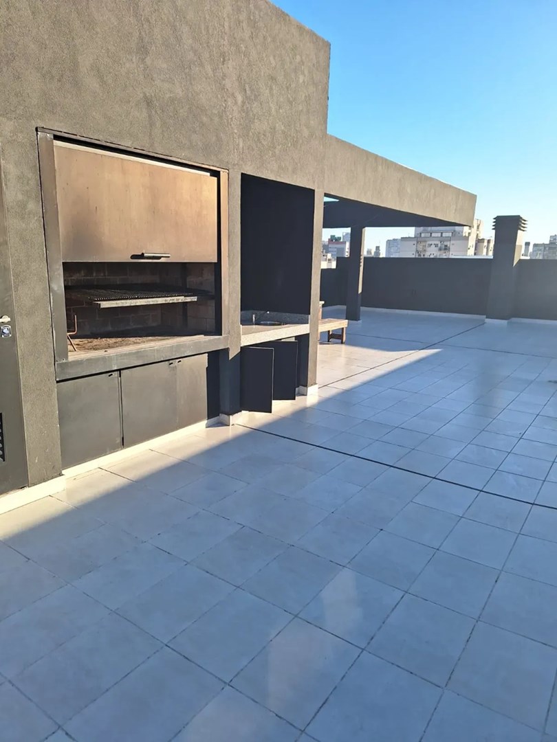Distribución: Living con balcón, dormitorio, cocina con concepto abierto y desayunador, baño completo