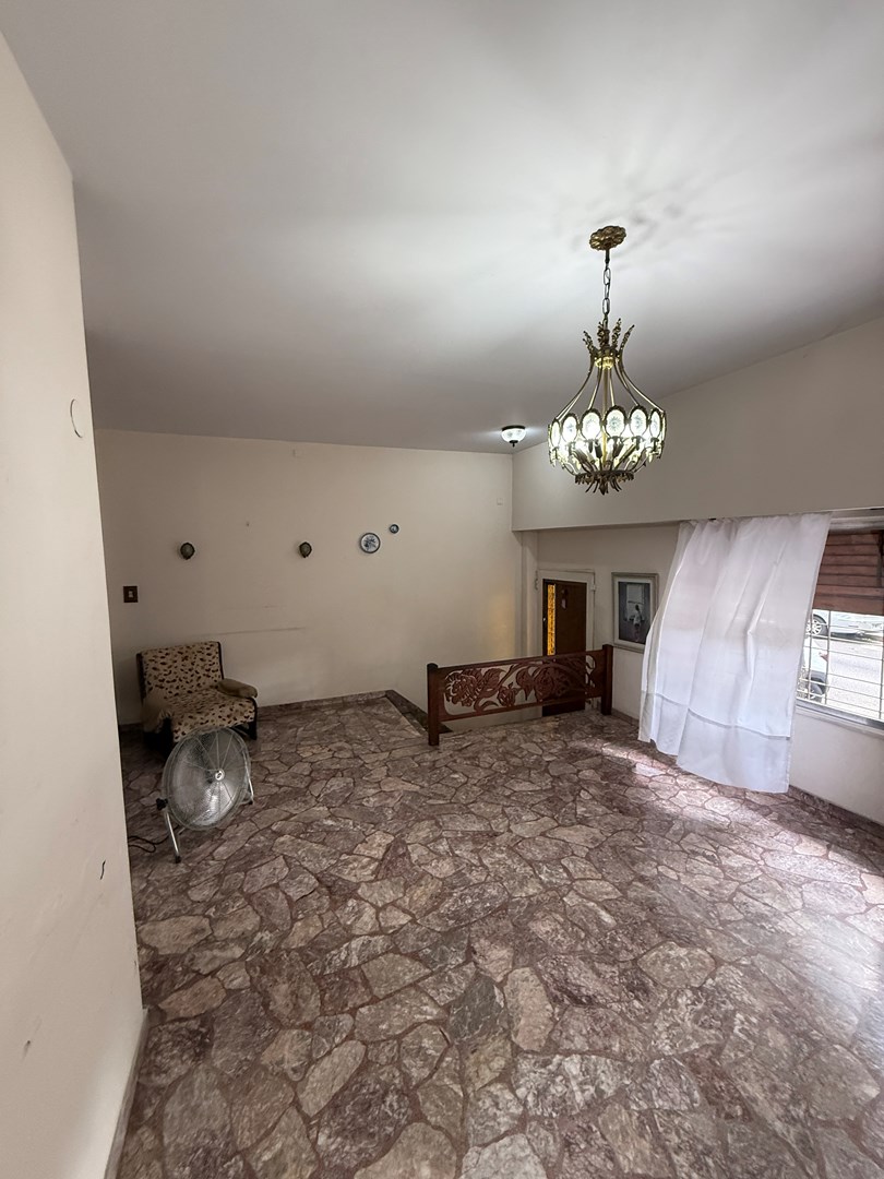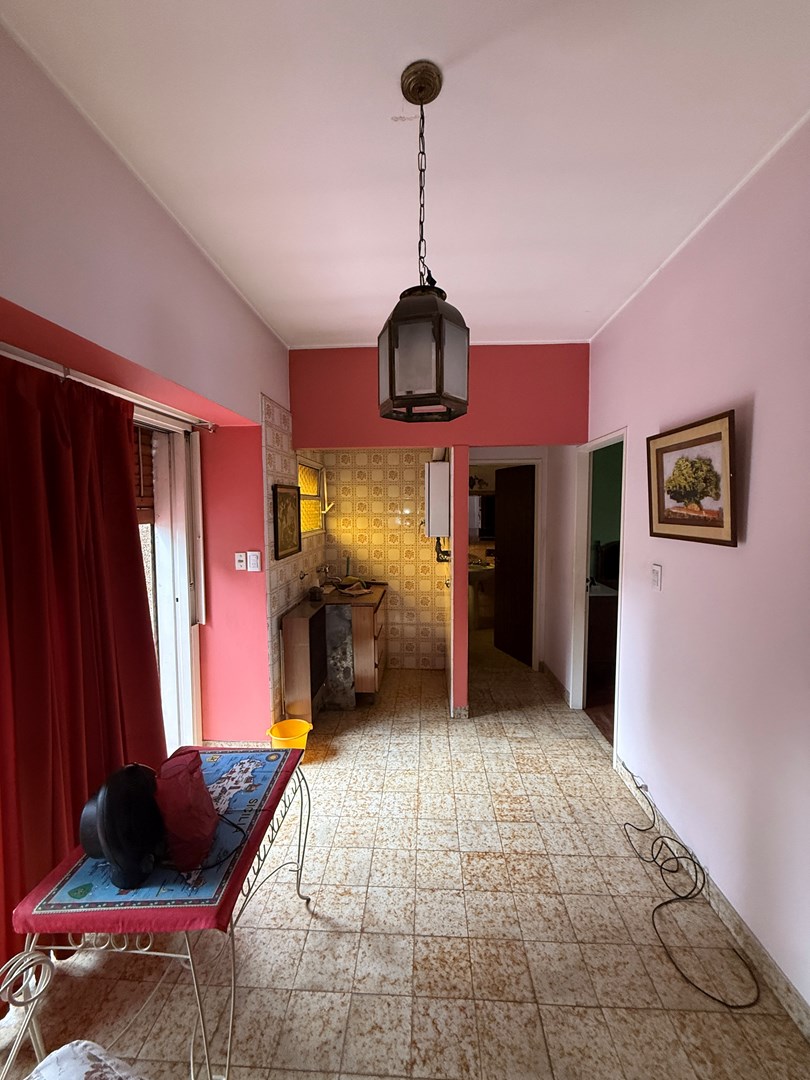 Al ingresar, en planta baja, se encuentra un amplio living de generosas dimensiones, cochera cubierta con portón manual, cocina independiente, un ambiente adicional que puede funcionar como antecocina o dormitorio, y un baño completo.