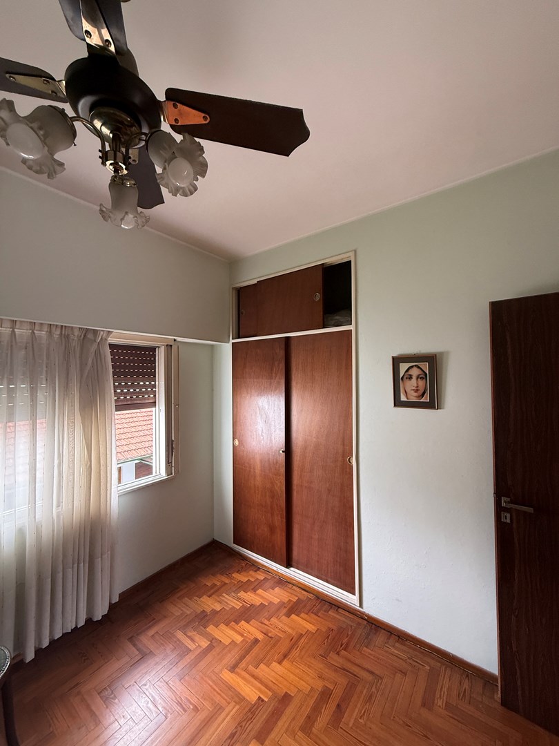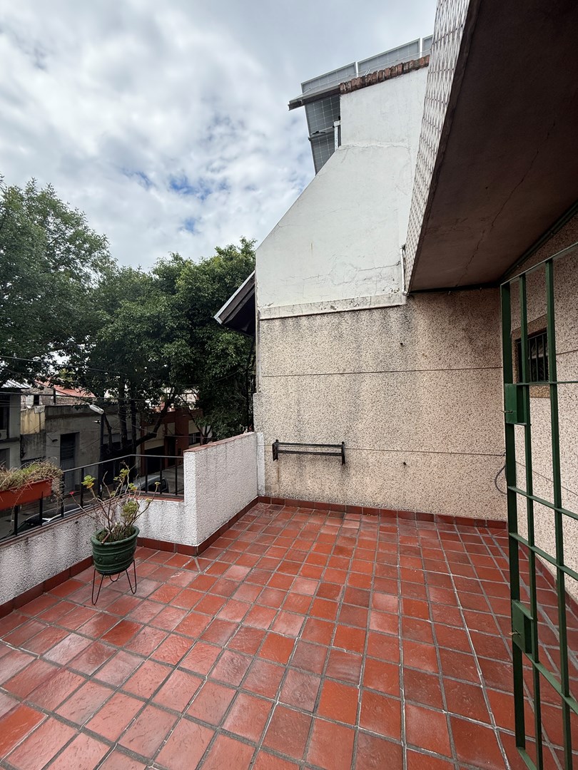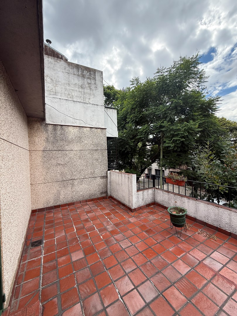 En planta alta, la propiedad ofrece dos dormitorios al contrafrente, un espacio tipo living o estar con cocina integrada, baño completo y un balcón terraza al frente, ideal para disfrutar del aire libre.