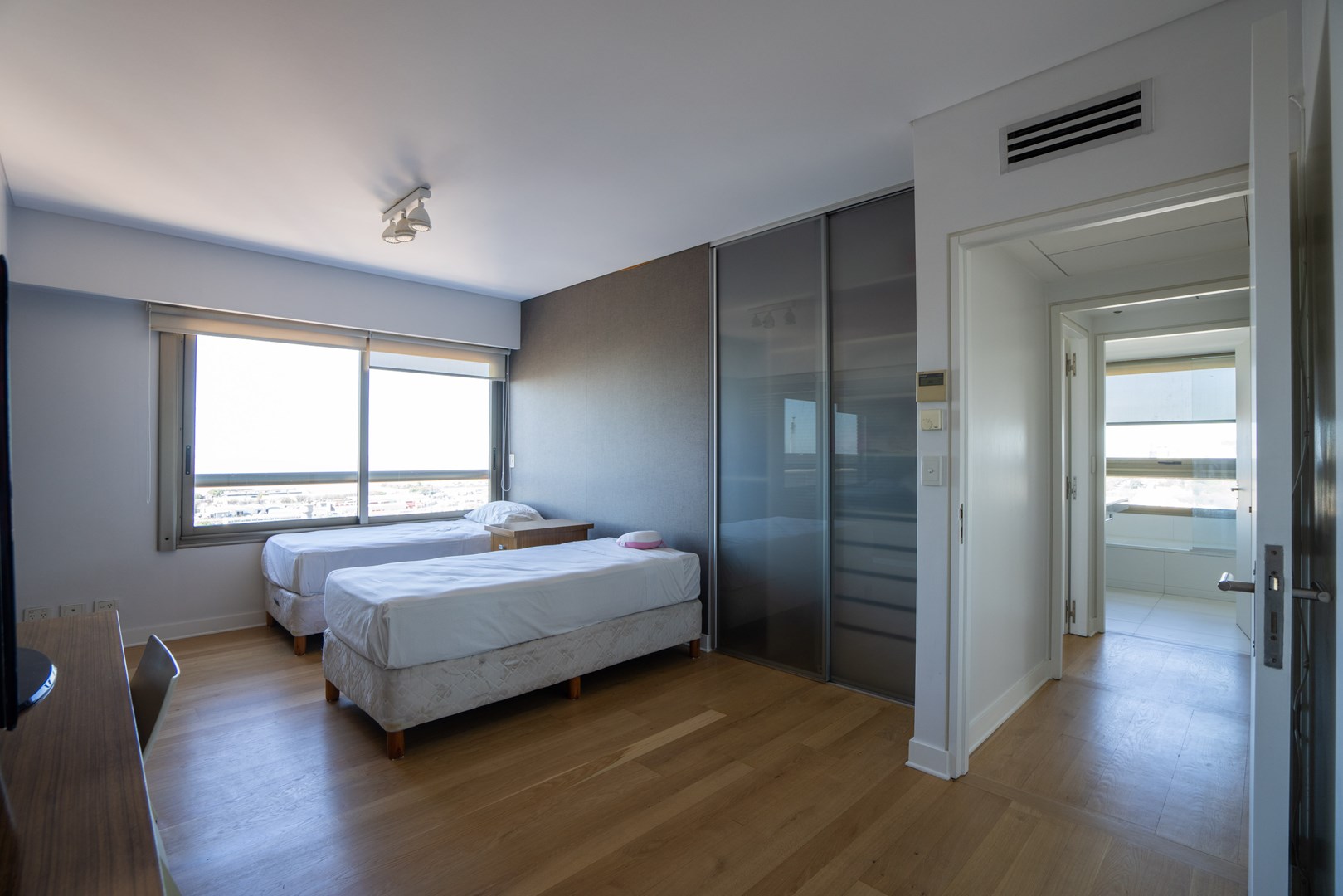 Alquiler del mejor piso de Las Torres de Gelly. Piso 27. Palier privado con dos ascensores. 3 habitaciones con baño en suite cada una. Expensas y ABL incluidas en el canon mensual. Totalmente amoblado y equipado. Living con salida a un gran balcón. Cocina completa con comedor diario. Habitación de servicio con su respectivo baño. Gran terraza con jacuzzi y vista al río y aeroparque. Edificio full amenities: pileta, SUM, gimnasio, salón de juegos para niños, spa, etc. Seguridad 24 hs. El departamento cuenta con 1 cochera, pero se puede conseguir una cochera mas. / *Las descripciones arquitectónicas, valores de expensas, impuestos o servicios, fotos y medidas de las propiedades son aproximados. Los datos fueron proporcionados por el propietario y pueden no estar actualizados a la hora de la visualización de este aviso por lo cual pueden arrojar inexactitudes o discordancias con las que surjan de los las facturas, títulos o planos legales del inmueble. Se pondrá a disposición del interesado la documentación necesaria a fin de realizar las verificaciones respectivas previamente a la realización de cualquier operación, requiriendo por sí o sus profesionales la documentación que corresponda. *Inciso 8 del artículo 10 de la Ley 2340 (texto consolidado según Ley N° 5666). Para los casos de alquiler de vivienda, el monto máximo de comisión que se le puede requerir a los propietarios será el equivalente al cuatro con quince centésimos por ciento (4,15%) del valor total del respectivo contrato. Se encuentra prohibido cobrar a los inquilinos que sean personas físicas comisiones inmobiliarias y gastos de gestoría de informes", segun Art.4 de la Ley 5.859 de C.A.B.A. Todas las operaciones están a cargo de la martillera pública Jorgelina Bonetto Guerrero. CUCICBA 8780 - CABA Nancy Moscovich CMCPSI 1083 - Pcia de Buenos Aires